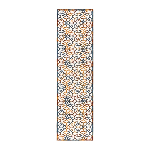 Inspiré par les motifs de fer forgé méditerranéens, ce tapis d'intérieur et d'extérieur donnera du style à une cuisine, un salon, une chambre à coucher ou une salle à manger. Le design multicolore est une solution d'entretien facile pour les maisons avec des enfants et des animaux de compagnie.