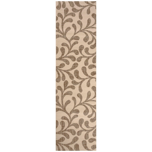 Un motif de vigne traditionnel donne à ce tapis d'intérieur et d'extérieur une allure classique idéale pour le porche ou la terrasse. Les tons brun neutre et beige sont parfaits pour un salon, une cuisine, une salle familiale, une salle à manger ou une chambre à coucher.