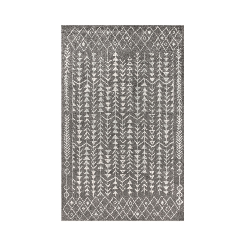 Inspiré par les tapis tribaux marocains vintage, notre version moderne est vouée à la puissance avec un velours court. Les motifs berbères classiques sont tissés en ivoire sur un champ de gris ; les fils mélangés rappellent les tapis traditionnels tressés à la main. Donnez un style bohémien à votre maison avec ce tapis facile à entretenir.