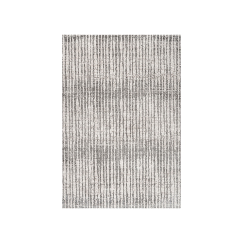 Avec ses rayures géométriques créant un effet de rayures, ce tapis moderne est idéal pour un espace contemporain ou minimaliste. Le motif général est une solution familiale pour un salon, une chambre à coucher, un couloir ou une entrée. Les fibres d'ivoire et de gris mélangées donnent la dimension du motif.