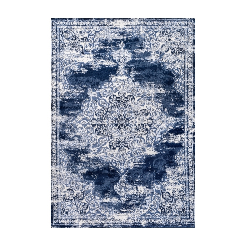 Le médaillon et les arches ornés de cet élégant tapis sont inspirés des motifs traditionnels de tapis persans. Le bleu chaud et le bleu marine sont le moyen idéal de moderniser un salon, une chambre à coucher, une entrée ou une salle à manger.