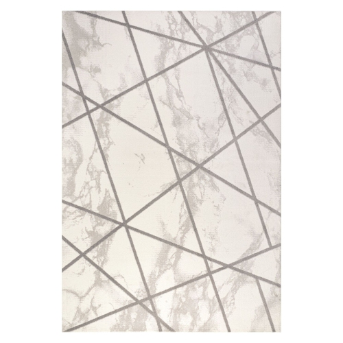Inspiré par les sols en marbre classique, ce tapis abstrait leur donne une touche moderne et luxueuse. Les lignes entrecroisées forment un motif géométrique sur un fond mélangé qui ressemble au marbre pâle.