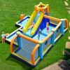 Profitez d'un moment joyeux avec notre toboggan aquatique gonflable ! Ils peuvent glisser, grimper, barboter, jouer au football et lancer des cibles dans différentes zones de jeu, ce qui permet à vos enfants de s'amuser sans fin. De plus, les canons à eau doubles ajoutent beaucoup de plaisir. Le tissu oxford durable avec couture de qualité supérieure assure une longue durée d’utilisation. Ce que vous devez faire, c'est simplement gonfler la structure gonflable et la fixer avec des piquets au sol, puis votre tout-petit peut s'immerger dans une meilleure expérience de jeu. Après utilisation, vous pouvez éteindre le gonfleur pour retirer le château gonflable et le ranger dans le sac de transport.