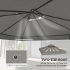 Toile de rechange pour abri de jardin Outsunny de 10 x 10 pi, toit de rechange pour abri de jardin extérieur à 2 niveaux avec trous d'évacuation, UPF30+, COUVERTURE DU SUP SEULEMENT, gris