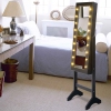 TopBuy – Armoire à bijoux avec éclairage à DEL miroir, armoire à dessus autoportant, noir