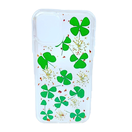 TopSave Double Couche Transparente Dur PC Arrière avec Pare-chocs TPU + Étui De Téléphone De Conception De Fleurs En Gaufrage Pour iPhone 12/12 Pro (6.1), Vert