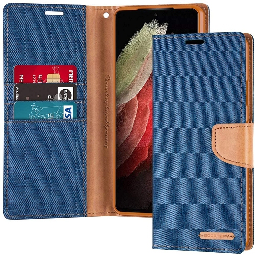 TopSave – Étui portefeuille folio en tissu avec fente pour carte de Goopery pour Samsung S21 (6.2 po), bleu