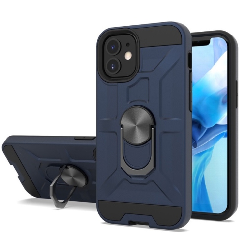 TopSave PC + TPU Coque de protection hybride robuste avec support à anneau rotatif à 360 degrés pour iPhone 12 Mini, bleu marine
