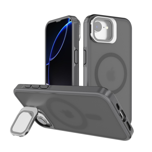 TopSave – Protecteur semi-transparent mat avec couvre-objectif surélevé et garniture métallique Étui pour appareil photo ajustable avec béquille pour iPhone 16e, gris