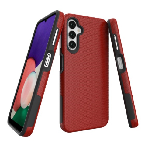 TopSave Triangle Pattern PC Back + Intérieur TPU Double Couche Hybride Robuste Coque pour Samsung Galaxy A14 6.6" 5G, Rouge