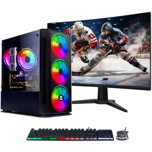 Tour d'ordinateur de jeu T1 1 To d'AQVIN – Nouveau moniteur de jeu incurvé 27 po – Processeur Core i7 d'Intel Mémoire vive DDR4 SSD de 32 Go – GeForce RTX 5050 8 Go GDDR6 – Windows 11 Pro