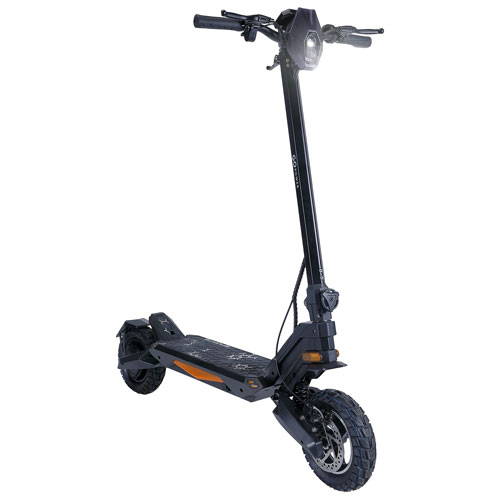 Roulez aisément en ville ou sur les sentiers dégagés avec la trottinette électrique GoDelta de GoPowerBike. Équipée d'un moteur de 1000 W, cette trottinette repliable atteint une vitesse maximale de 45km/h. L'autonomie maximale de 56 km par recharge vous permet de rouler longtemps. Ses gros pneus de 10 po offrent une conduite stable et confortable, tandis que le guidon en T vous aide à rester en équilibre.