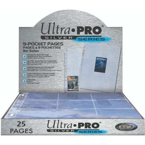 Ultra Pro Pages 9 Pocket Silver Series Protecteur nouveauProtégez, triez et stockez vos cartes de sport et de jeu de taille standard (2-1/2 po X 3-1/2 po) avec les pages Silver Series d'Ultra Pro. Fabriquées avec un film transparent sans PVC, sans acide et sans danger pour les archives, ces pages à 9 pochettes à chargement par le haut sont un choix idéal pour tous les types de cartes à échanger...