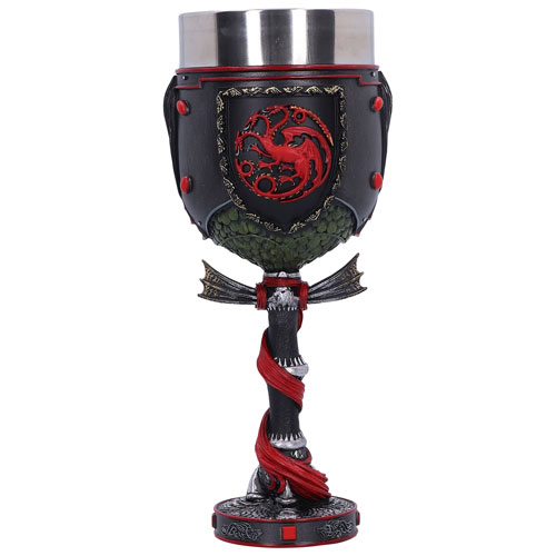 Entrez dans le monde de Westeros avec ce somptueux verre à pied de Daemon Targaryen de Nemesis Now. Ce produit sous licence officielle présente fièrement le sceau de la Maison du Dragon pour rendre hommage à la dynastie Targaryen. Il a été moulé dans de la résine de grande qualité, puis méticuleusement peint à la main pour durer longtemps. De plus, ce verre à pied comprend un gobelet amovible en acier inoxydable pour se nettoyer facilement et durer longtemps.