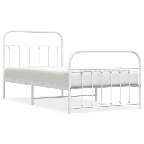 VidaXL – Cadre de lit simple en métal blanc avec tête de lit et lattes, sans matelas, assemblage facile