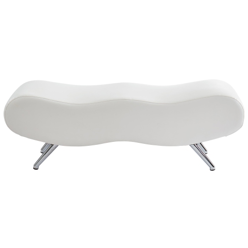 Banc double stylé, aux lignes épurées, avec un siège au contour en peluche. Construction solide, en bois dur, et cadre intérieur métallique avec pieds de métal au fini chrome. Il est offert en similicuir blanc, rouge ou noir.Style contemporain.Siège pelucheux enveloppant revêtu de similicuir.Pattes en métal chromé.Coussin en mousse de polyester semi-ferme.Capacité de poids d'environ 200 lb (90 kg).