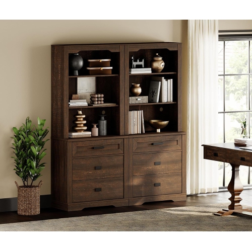 WAMPAT – Bibliothèque à 3 niveaux avec 6 tiroirs, bibliothèque à 73 colonnes de 6 po et 3 tablettes ouvertes pour la chambre, le salon et le bureau à domicile, brun
