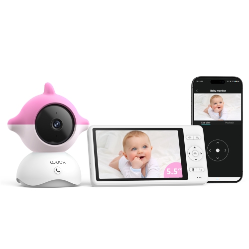 WUUK 2K Video Baby Monitor, 5.5'' Baby Monitor with 360 PTZ Color Display with 135° Wide Angle, Ultra-clear Night Vision, Baby Camera with App, One-Touch Call, Cry Detection