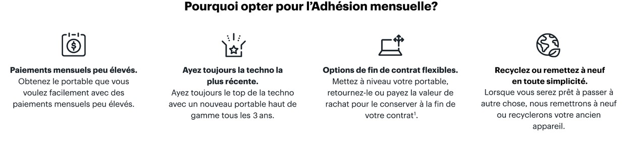 Obtenez un nouveau portable tous les 3 ans avec l'Adhésion mensuelle.¹